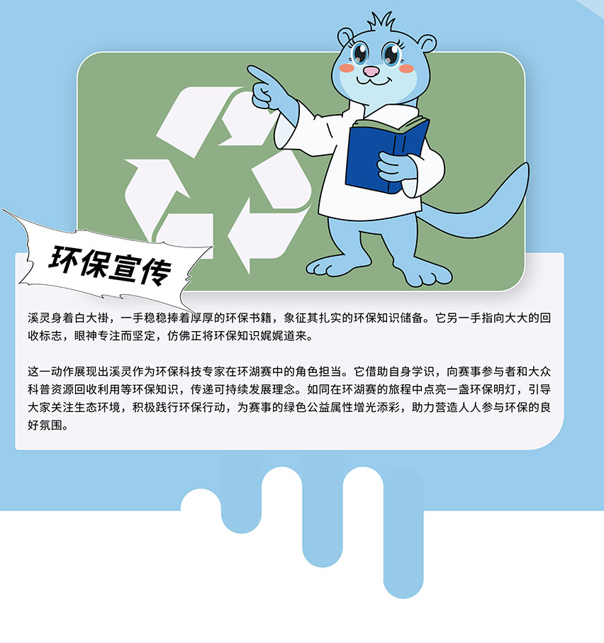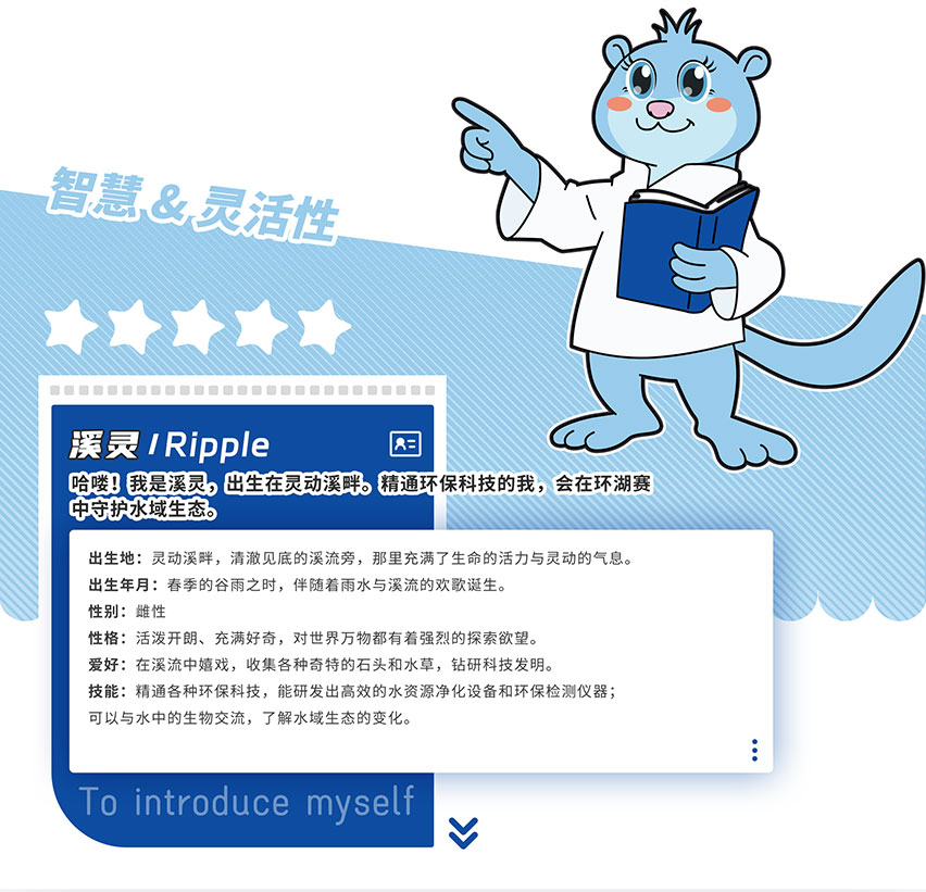 Xiling, this water-blue otter, is extremely fond of tinkering with technology, Protect water resources with detection equipment.