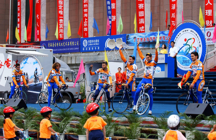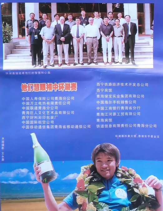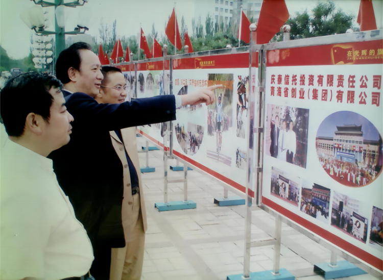 2003年第二届环青海湖国际公路自行车赛开幕式现场布置中,武英董事长给政府相 关领导成员展望“环湖赛”发展规划,庆泰信托投资有限责任公司连续赞助比赛