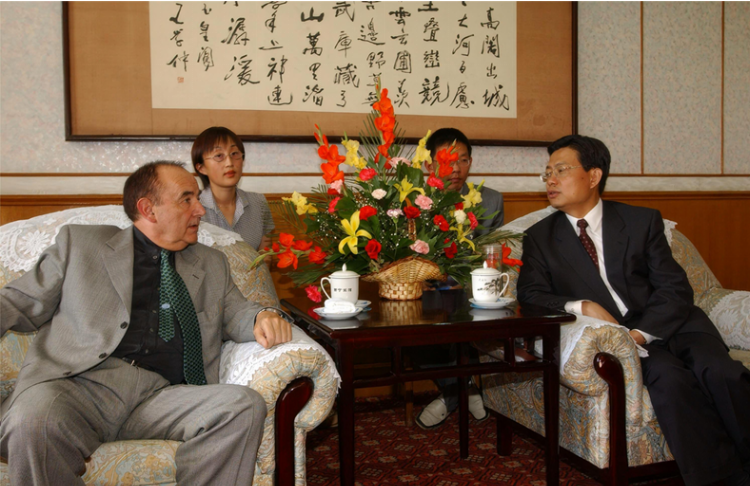 时任青海省省委副书记、省长:赵乐际与国际自行车联盟官员巴意会务, 为环湖赛发展打下坚实基础。