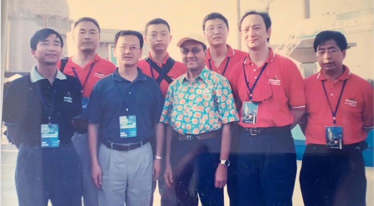 With Zhang Hui, the Secretary of the Qinghai Provincial Committee (Second from the left) A group photo of the operation officers of the Tour of Langkawi International Cycling Race. 2002 years, In the same year 7 month, "Tour of Lake" Birth